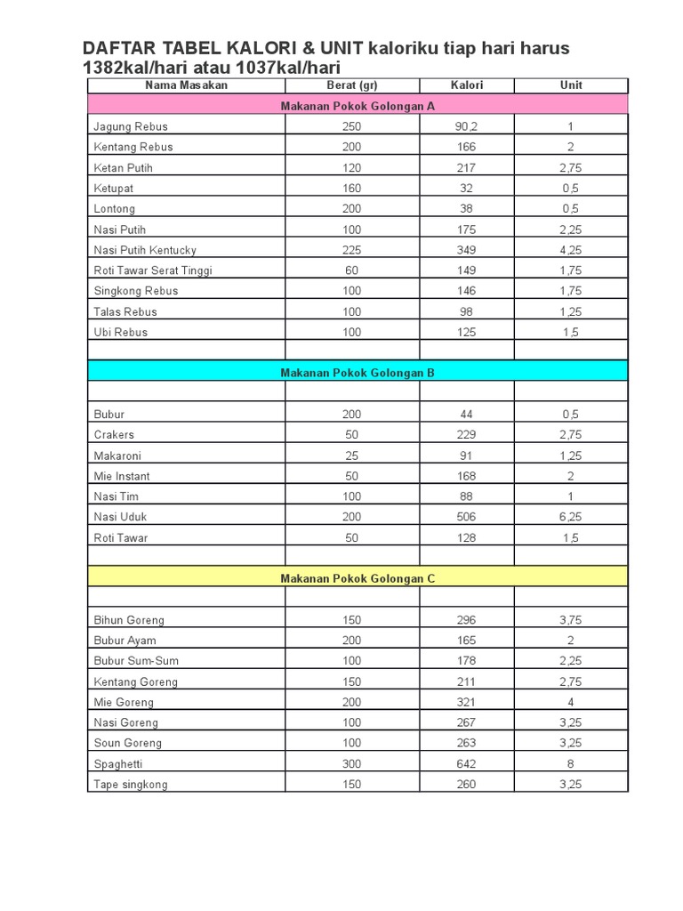 Xls Daftar Kalori Makanan Happivies Sixiangs Academia Edu